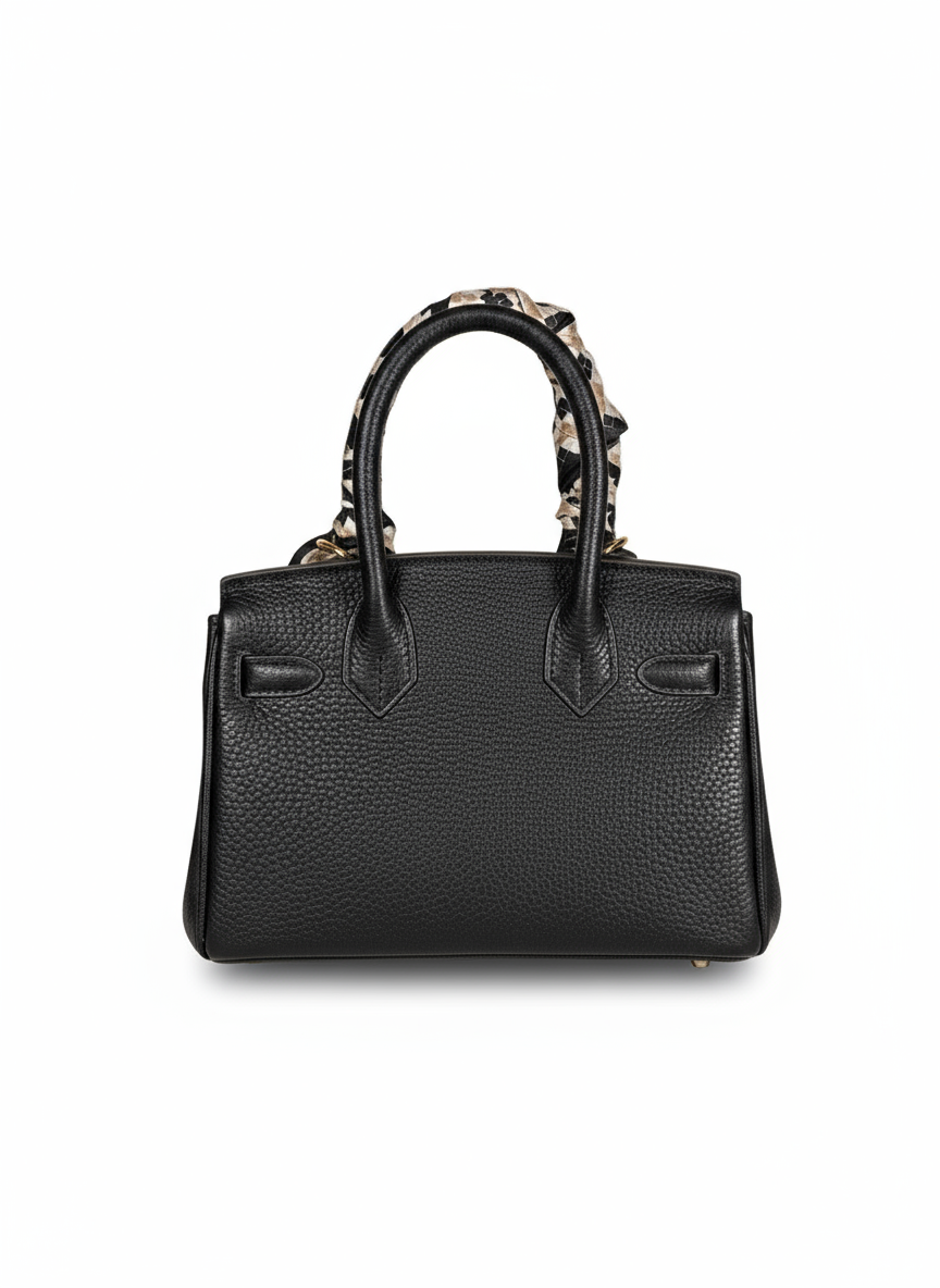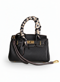 La Borsa CHARLOTTE Foulard mini è una strutturata compatta d'ispirazione classica. In materiale PU a grana martellata con ferramenta dorata , presenta patta con girello , cinghie laterali e clochette . I manici sono avvolti da twilly rimovibili a motivo check beige/nero per un tocco grafico. Tracolla inclusa per portabilità crossbody. Elegante di giorno, sofisticata la sera. Fatta a mano in Italia.