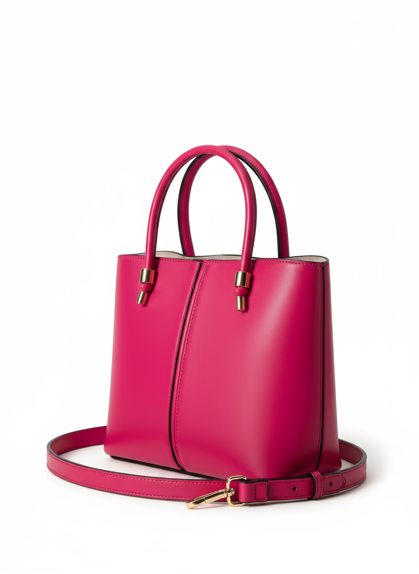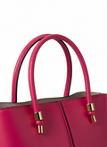La Borsa BEATRIX è una tote compatta dalla linea pulita e brillante. In materiale PU liscio con ferramenta dorata, si distingue per i manici tubolari con terminali metallici a nodo e il taglio verticale centrale che ne slancia la silhouette. Chiusura magnetica superiore e interno organizzato: perfetta per aggiungere colore al daily look. Disponibile in Fucsia e Viola.
