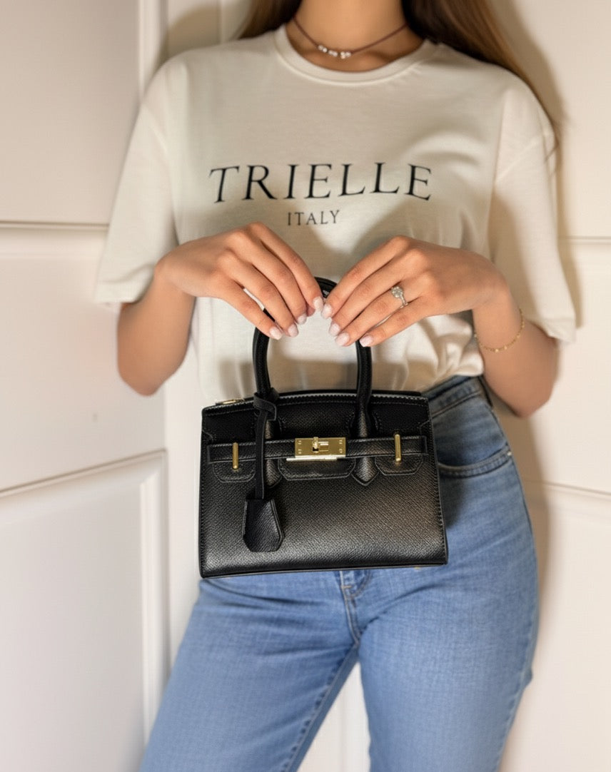 La Borsa SUSAN è una strutturata compatta dall'eleganza essenziale. In materiale PU a grana fine con ferramenta dorata , presenta patta con girello centrale, cinghie decorative e clochette pendente. Linea trapezoidale pulita, perfetta dal giorno alla sera con l'indispensabile sempre in ordine.