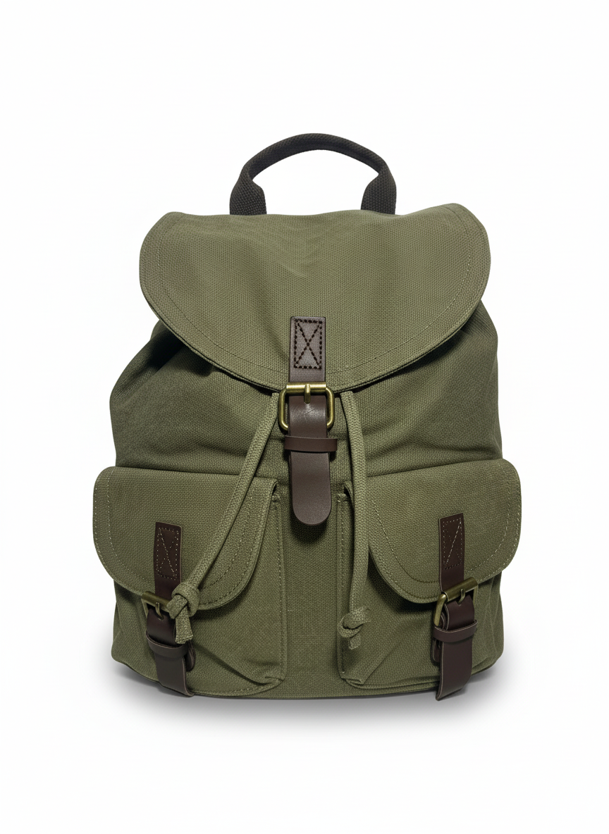 Zaino VINTAGE è il compagno daily robusto e leggero. Realizzato in canvas resistente con dettagli in PU e ferramenta ottone anticato, combina patta con fibbia (chiusura rapida a clip) e coulisse interna per maggiore sicurezza. Tre tasche esterne con fibbia per l’essenziale a portata di mano. Spallacci regolabili, schienale morbido. Perfetto per lavoro, università e weekend.